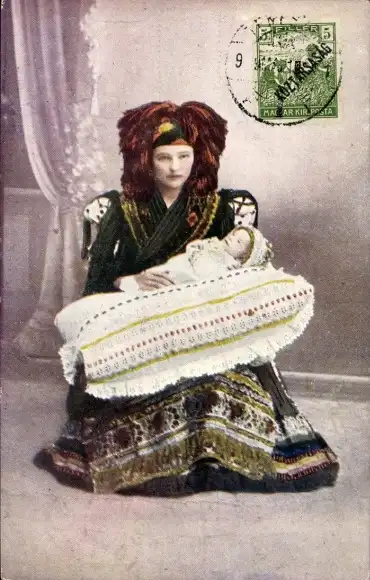 Ak Mutter mit Kind, Mezőkövesdi népviselet
