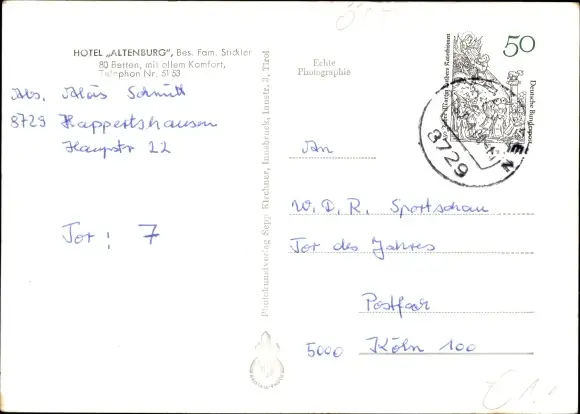 Zustand, siehe Scan, gelaufen- Inh. Fam. Stickler - ca 15 cm X 11 cm