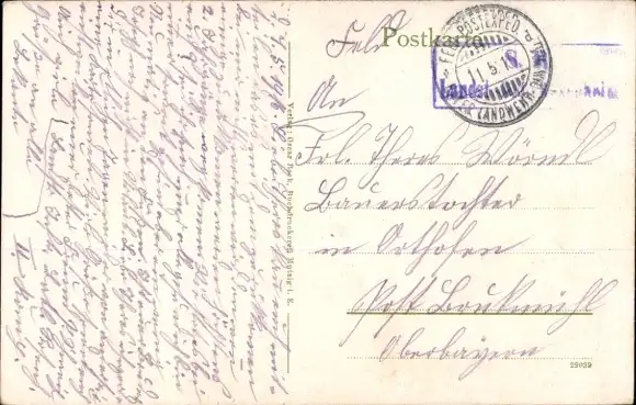 Zustand siehe Scan, 1918, gelaufen - ca 14 cm X 9 cm