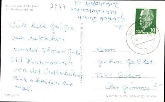 Ak Mutzschen Grimma in Sachsen, Karl Liebknecht Platz, Kirche, Geschäfte, Ratskeller