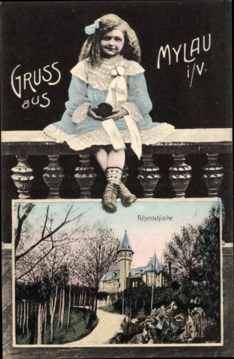 Ak Mylau Reichenbach im Vogtland, Felsenschänke, Mädchen-Portrait