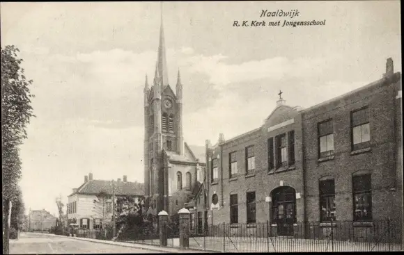 Ak Naaldwijk Südholland, R. K. Kerk met Jongensschool