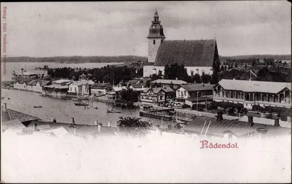 Ak Naantali Finnland, Totalansicht, Fluss, Boote