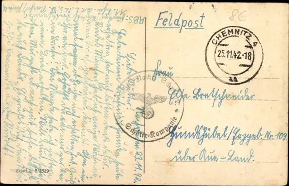 Zustand, siehe Scan, gelaufen, 1942 - ca 14 cm X 9 cm
