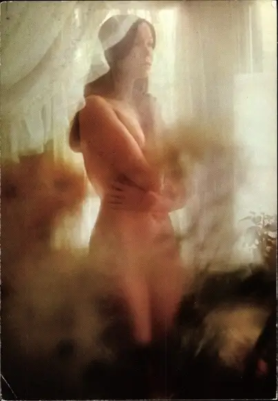 Ak Nackte Frau am Fenster, Frauenakt, Gardinen