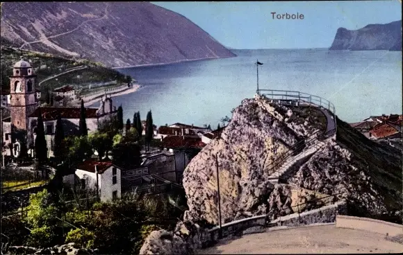 Ak Nago Torbole Trentino, Kirche, Ausichtsplatform