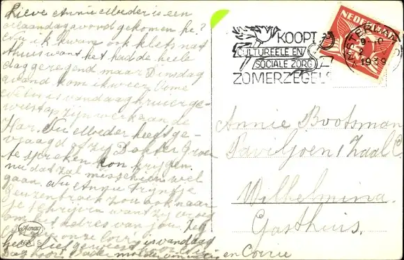 Zustand, siehe Scan-, gelaufen, 1939 - ca 9 cm X 14 cm