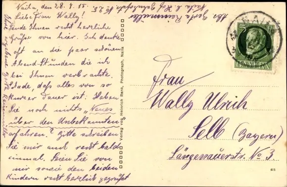 Zustand, siehe Scan, gelaufen, 1915 - ca 14 cm X 9 cm