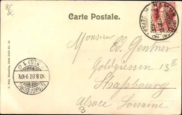 Zustand, siehe Scan, gelaufen, 1907 - ca 14 cm X 9 cm