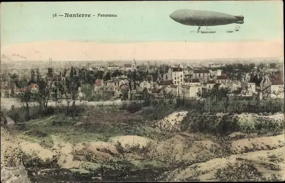 Ak Nanterre Hauts de Seine, Panorama, Zeppelin