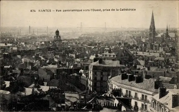 Ak Nantes Loire Atlantique, Vue panoramique vars l'Ouest, prise de la Cathedrale