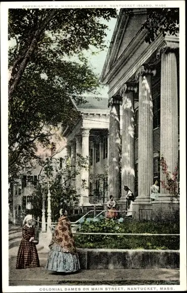 Ak Nantucket Massachusetts USA, Kolonialdamen auf der Main Street