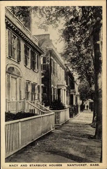 Ak Nantucket Massachusetts USA, Macy und Starbuck Häuser