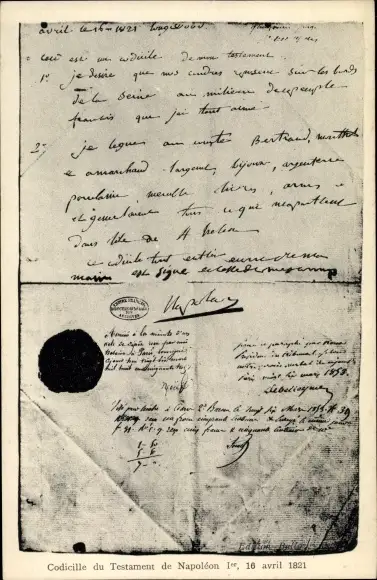 Ak Napoleon Ier, Codicille du Testament 1821