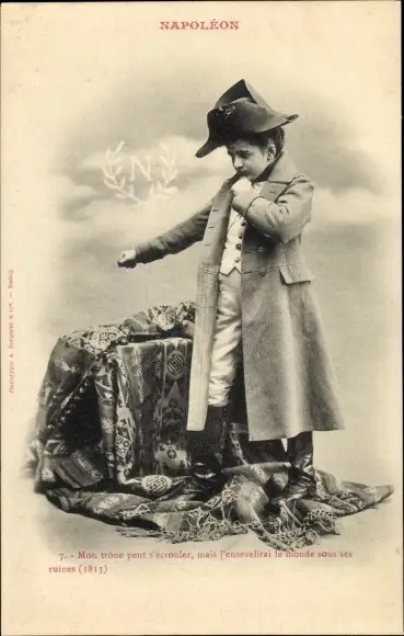 Ak Napoleon, Mon trone peut s'ecrouler, Kind in historischer Uniform