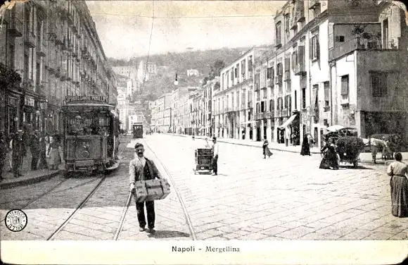Ak Napoli Campania, Mergellina, Straßenbahn, Straßenansicht