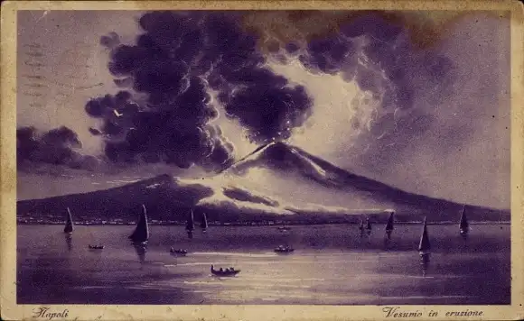 Ak Napoli Neapel Campania, Blick zum ausbrechenden Vesuv