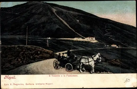 Ak Napoli Neapel Campania, il Vesuvio e la Funicolare, Kutsche, Vulkan