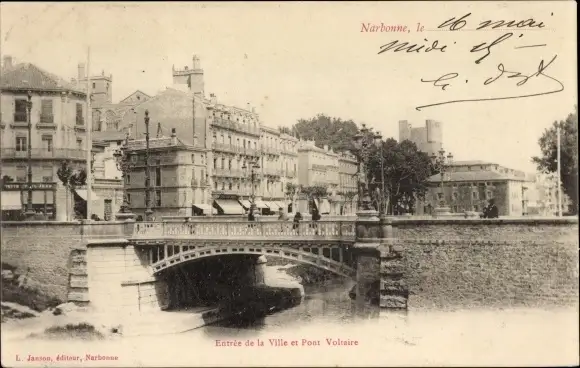 Ak Narbonne Aude, Pont Voltaire