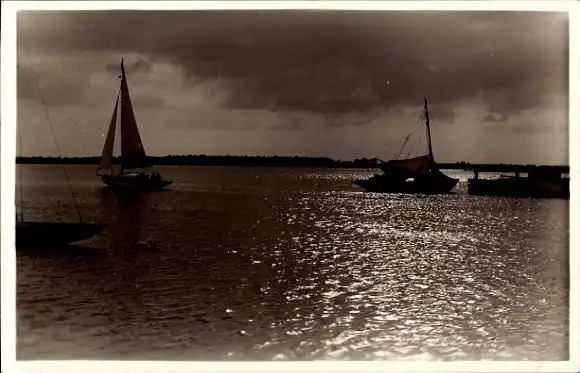 Ansichtskarte, Postkarte, Hafen, Schiffe, Boote, Dampfer, Boot