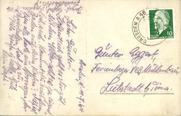 Zustand, siehe Scan, gelaufen, 1964 - ca 5 cm X 3 cm