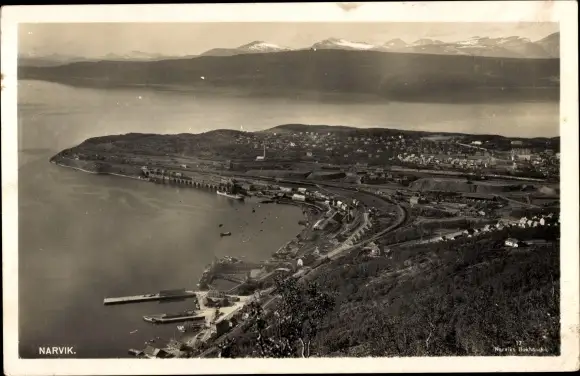 Ak Narvik Norwegen, Gesamtansicht, Luftbild