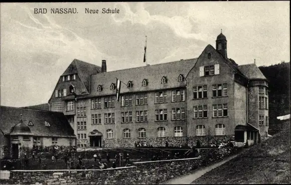 Ak Nassau an der Lahn, Neue Schule, Kinder auf dem Spielplatz