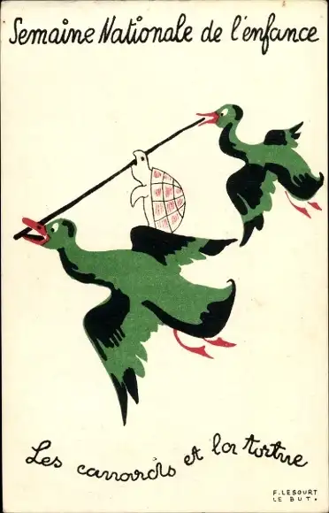 Ak Nationale Kinderwoche, Enten und die Schildkröte, Fabel
