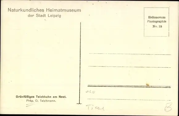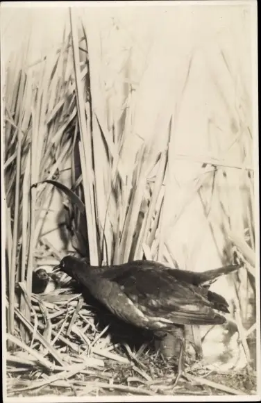 Ak Naturkundliche Heimatmuseum der Stadt Leipzig, Grünfüßiges Teichhuhn am Nest