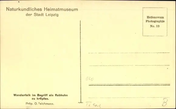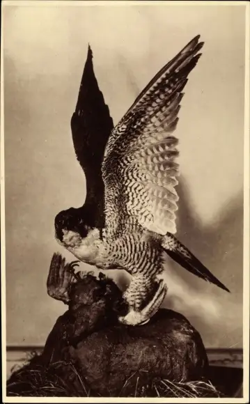 Ak Naturkundliches Heimatmuseum der Stadt Leipzig, Wanderfalk im Begriff ein Rebhuhn zu kröpfen