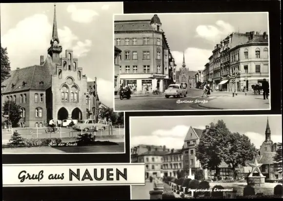 Ak Nauen im Havelland, Rat der Stadt, Berliner Straße, Sowjetisches Ehrenmal