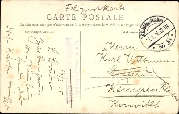 Zustand, siehe Scan, gelaufen, 1916 - ca 14 cm X 9 cm