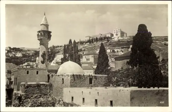 Ak Nazareth Israel, Teilansicht der Stadt, Blick hoch zum Berg