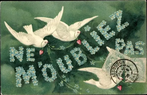 Ak Ne m'oubliez pas, Tauben, Vergissmeinnicht