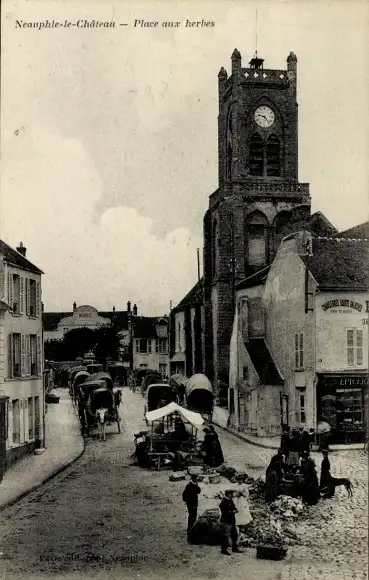 Ak Neauphle le Chateau Yvelines, Kräuter Markt, Kirche