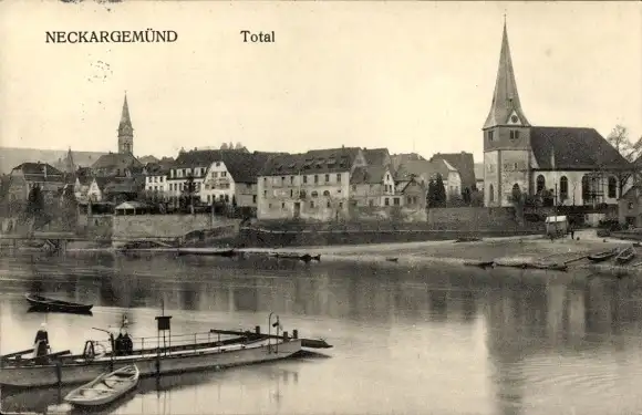 Ak Neckargemünd am Neckar, Gesamtansicht, Fähre