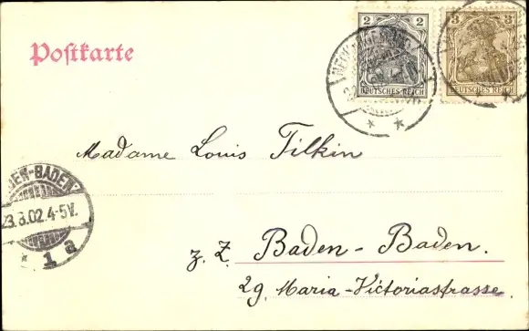 Zustand, siehe Scan, gelaufen, 1902 - ca 9 cm X 14 cm