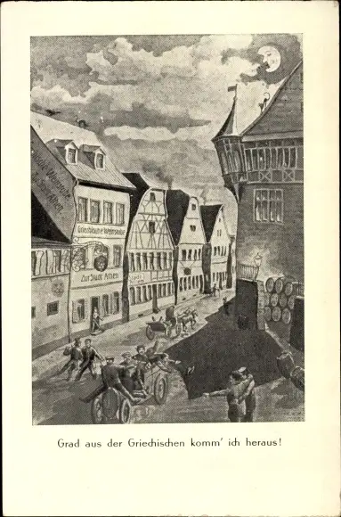 Ansichtskarte, Postkarte, Weinstube, Kelterei, Winzerei, Weinschänke, Athen