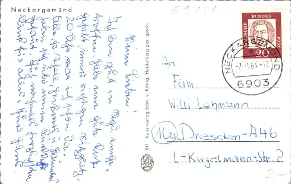 Zustand, siehe Scan, gelaufen, 1964 - ca 9 cm X 14 cm