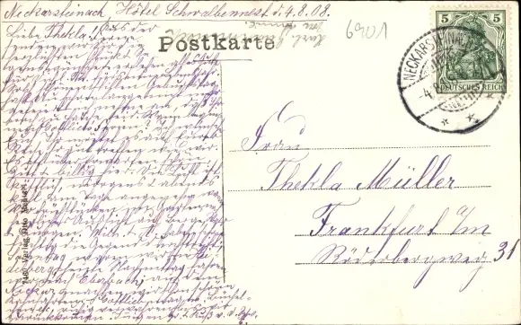 Zustand, siehe Scan, gelaufen, 1908 - ca 9 cm X 14 cm