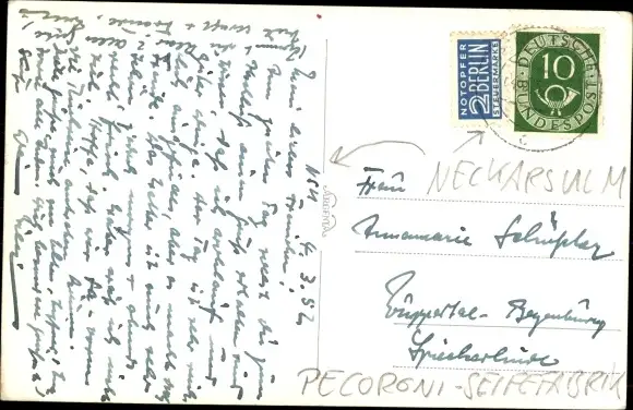 Zustand, siehe Scan, gelaufen, 1952 - ca 14 cm X 9 cm