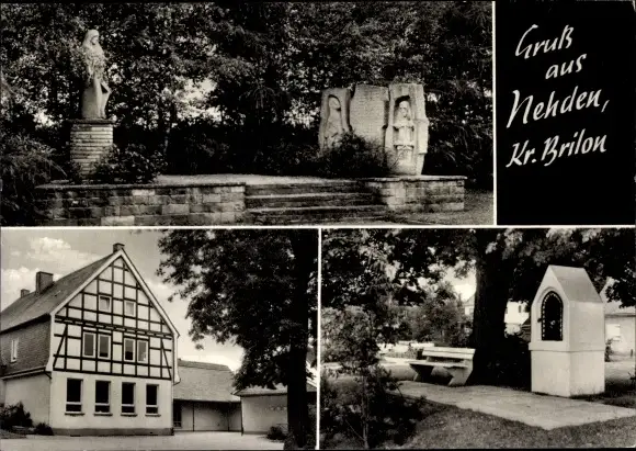 Ak Nehden Brilon im Sauerland, Denkmal, Fachwerkhaus, Park