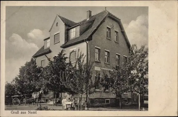 Ak Nemt Wurzen in Sachsen, Personen und Kutsche vor einem Gasthof