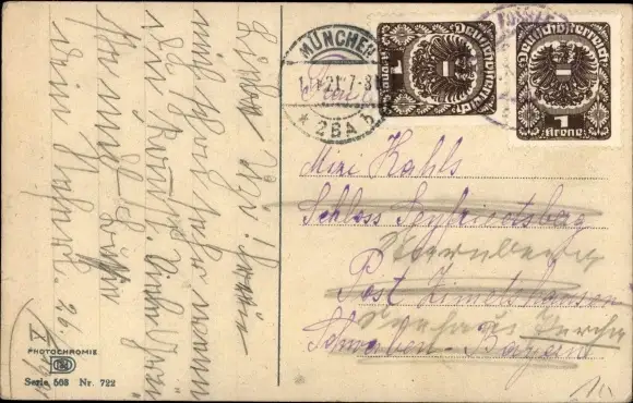 Zustand, siehe Scan, gelaufen, 1921 - ca 9 cm X 14 cm