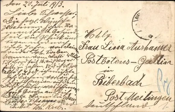 Zustand, siehe Scan, gelaufen, 1913 - ca 14 cm X 9 cm