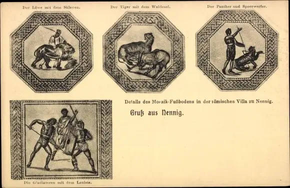 Ak Nennig Perl an der Mosel, Mosaikfußboden der römischen Villa, Details