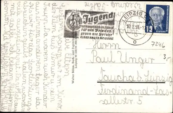 Zustand, siehe Scan, gelaufen, 1951 - ca 14 cm X 9 cm