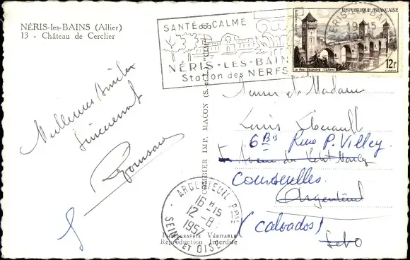 Ak Néris les Bains Allier, Chateau de Cerclier