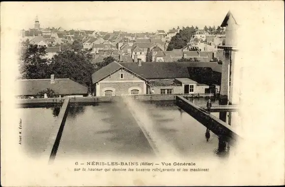 Ak Néris les Bains Allier, Vue générale, bassin refrigerants