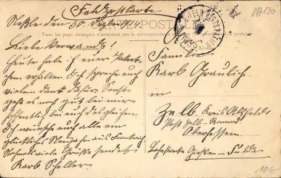 Zustand, siehe Scan, gelaufen, 1914 - ca 14 cm X 9 cm